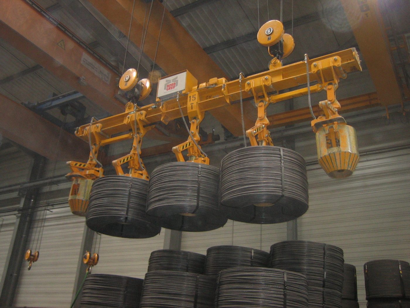• Art und Form abhängig von der Last und der Transportaufgabe: Drahtcoilinnenzangen, Drahtcoilaußenzangen, Spulenzangen für stehende Spulen, Spulenzangen für liegende Spulen