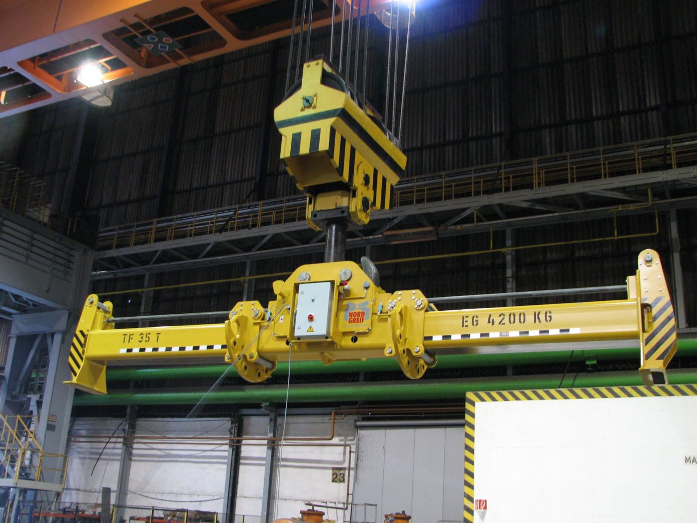- Anbindung an Kran mit Aufhängern, Kranhakenaufnahmen, Anschlagpunkten, Anschlagmitteln oder Seilrollen