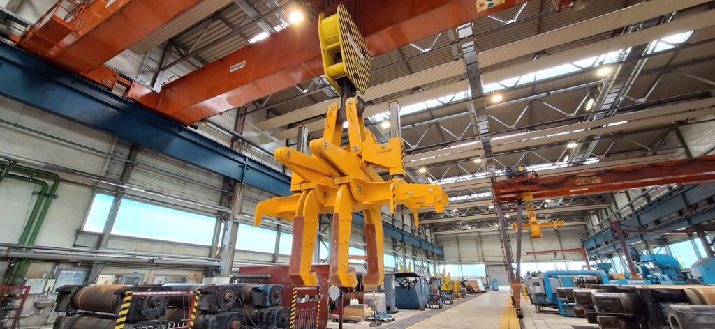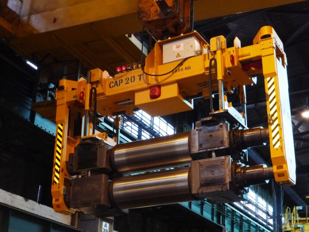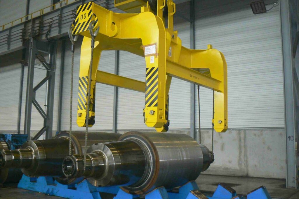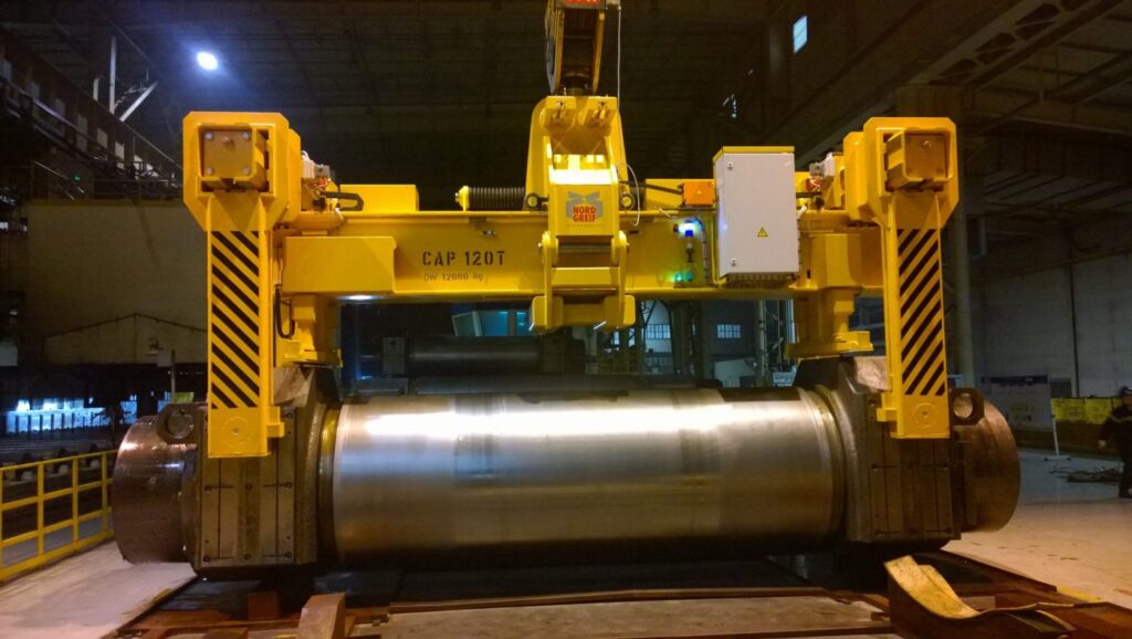 - Greifen der Walzen mit einem oder zwei parallelen Greifarmpaaren am Walzenkörper oder an den Baustücken
