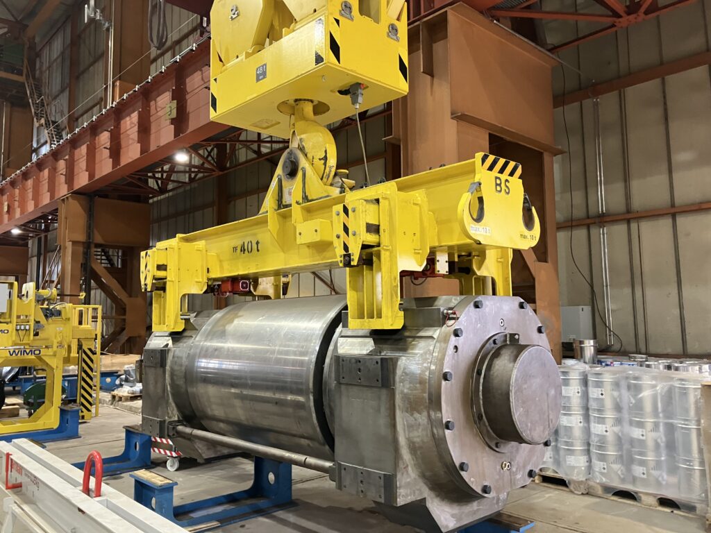 Transport von Arbeitswalzen und/oder Stützwalzen mit und ohne Baustücke mit horizontaler Achse